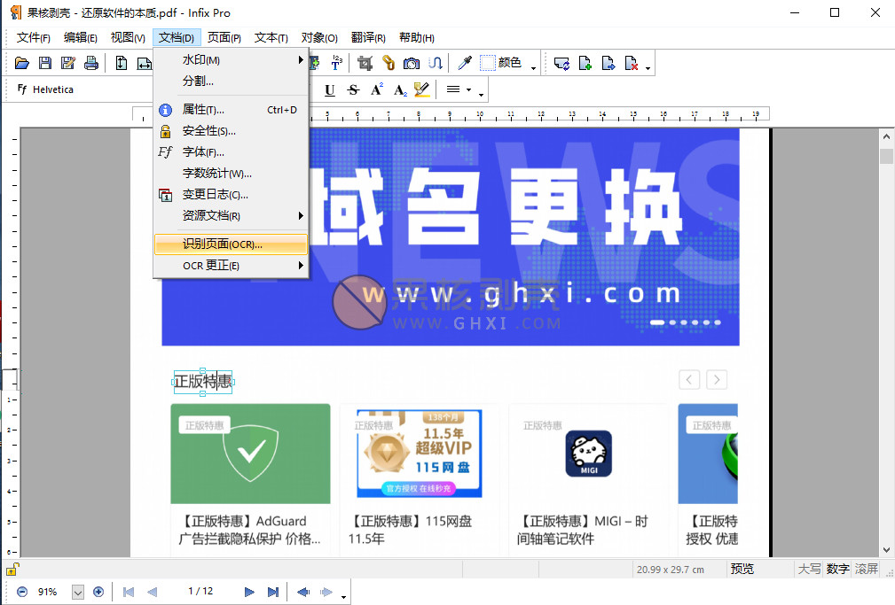 InfixPDFEditor_Pro,一款便携的pdf处理工具,支持ORC识别直接更改文档中的文字,更改文字的字体、颜色、大小。支持调整图片尺寸,新的翻译工具还可以快速翻译某个选定部分。还有差异比较、标注、注释、自定义图章、pdf文档转换,保留布局等功能。