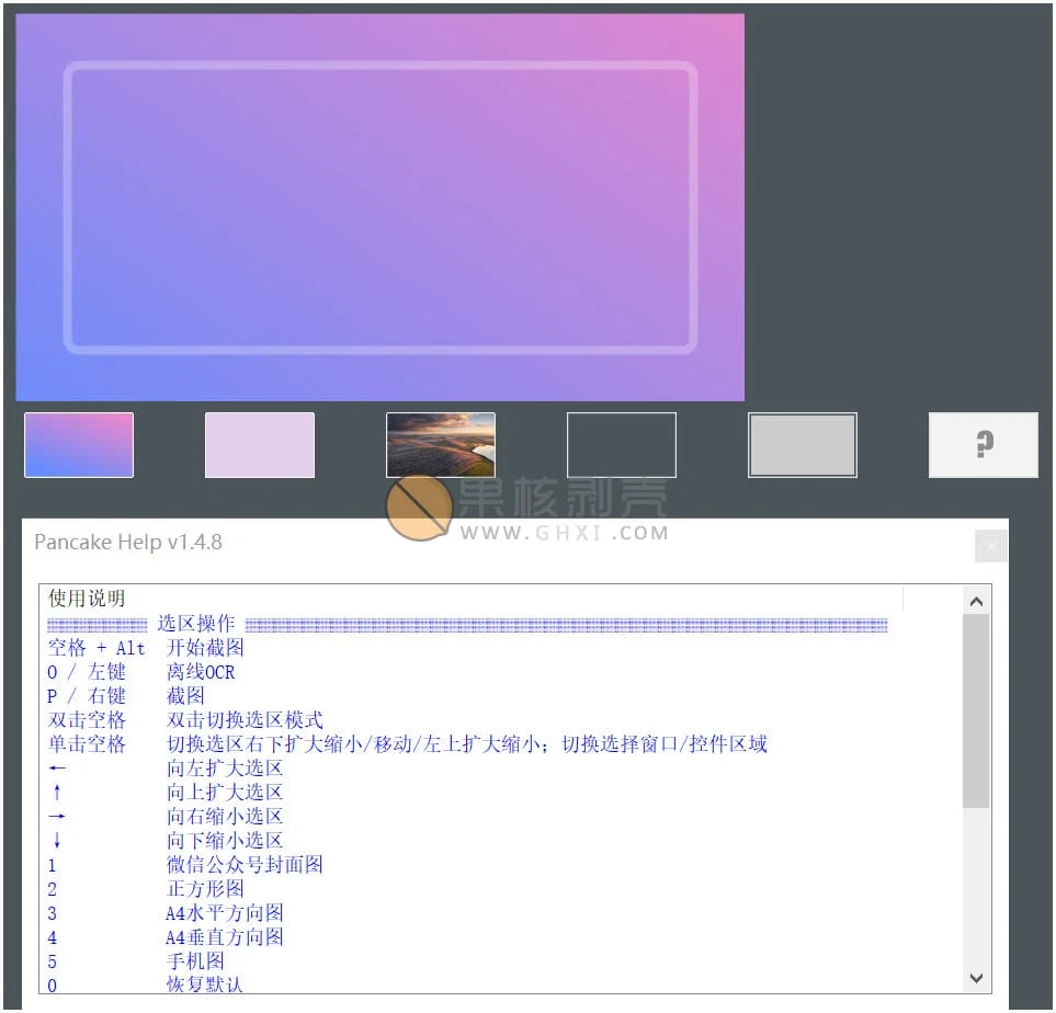 Pancake 是一款适用于不想长时间按着鼠标截图,也不想截图枯燥无味的时候开发的工具。是作者使用 AutoHotkey v2.0 开发的小工具,目前提供的是打包exe的版本,功能进一步完善后打算开源。