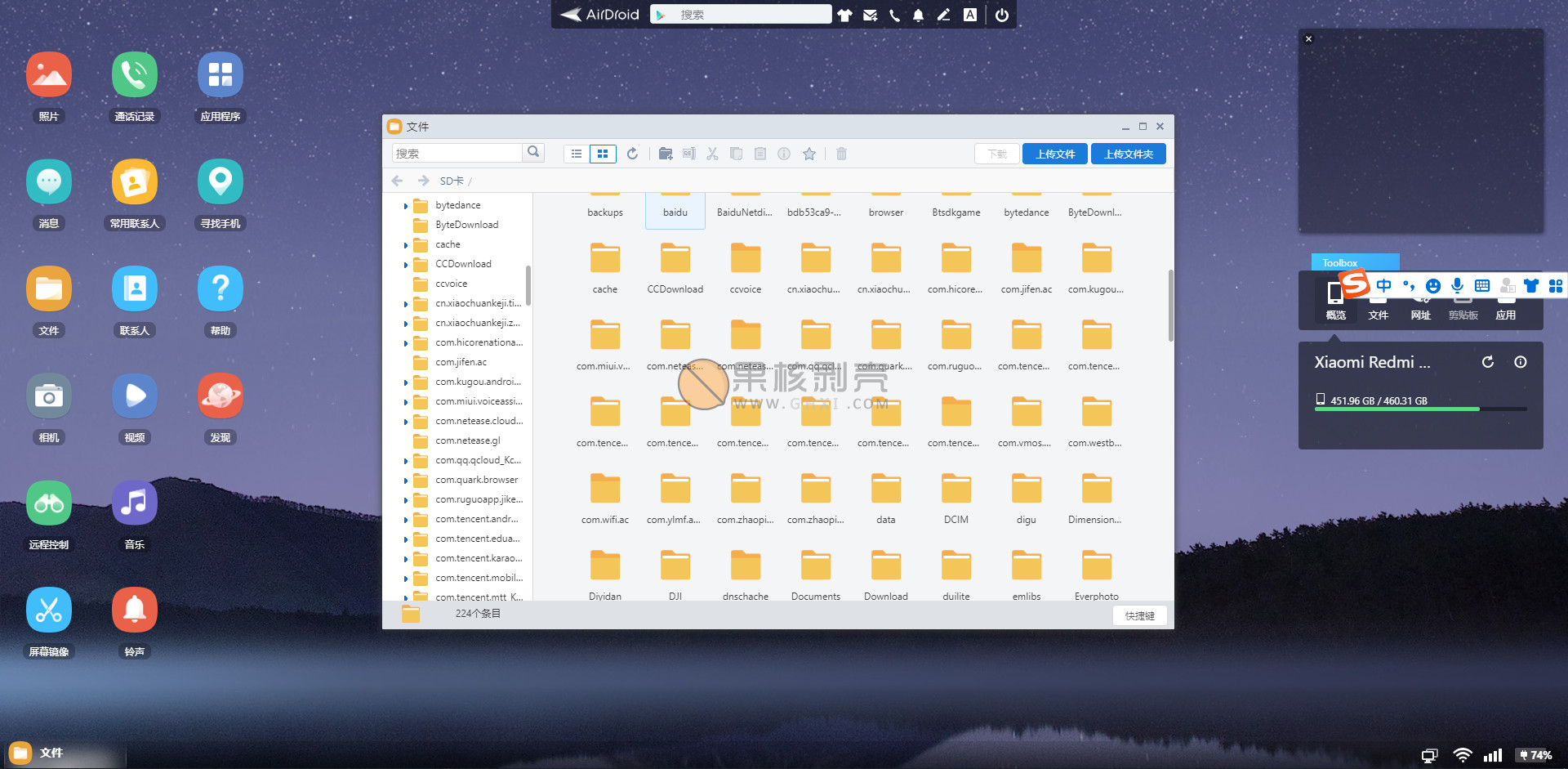 AirDroid 是在全球范围都备受好评的 Android 设备管家,在电脑可以接收设备的通知、回复短信,电脑与设备高效互传文件,远程控制功能更能实现电脑完全控制 Android 设备。