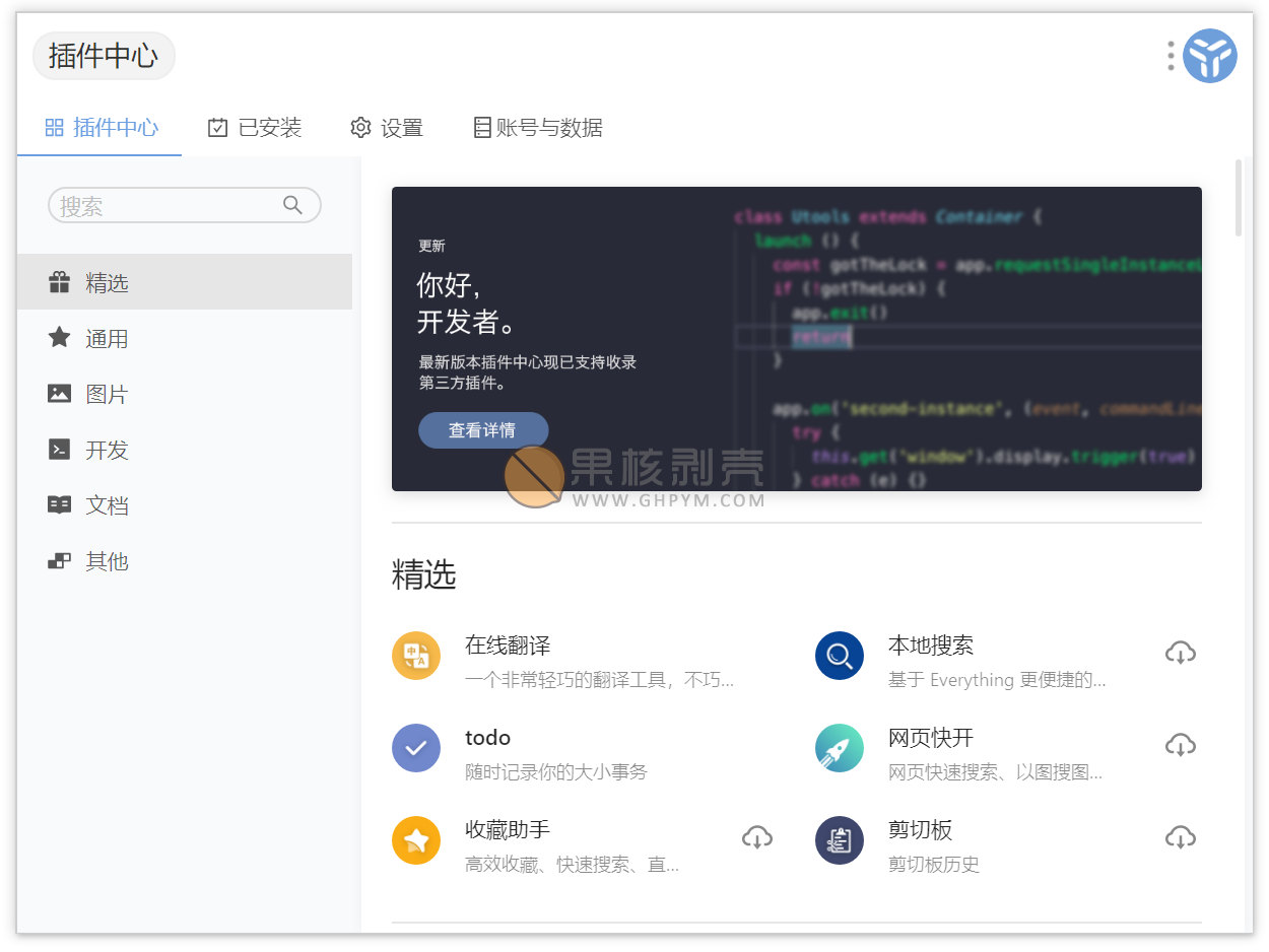 uTools是一个极简、插件化、跨平台的现代化桌面软件。通过自由选配丰富的插件,打造你得心应手的工具集合。