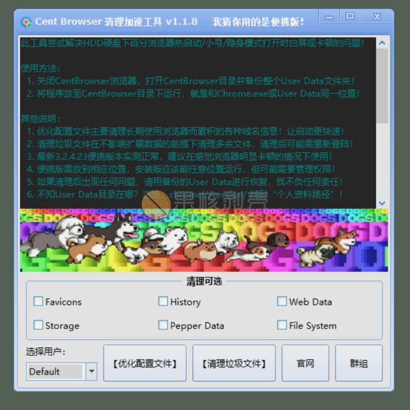 增加了由百分浏览器论坛時光機制作的Cent Browser 清理加速工具