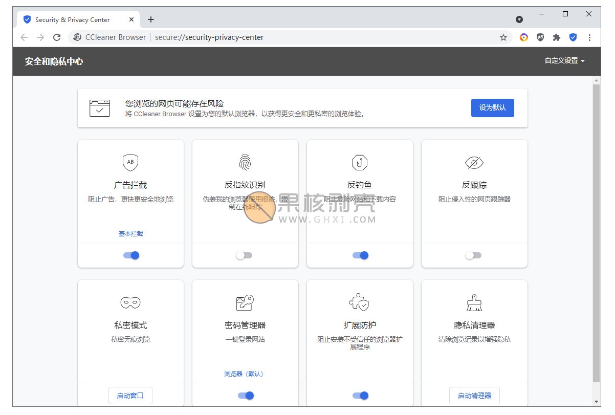 1、CCleaner浏览器自带保护模式,可以避免你受到网络病毒攻击,可以避免受到钓鱼网站威胁
